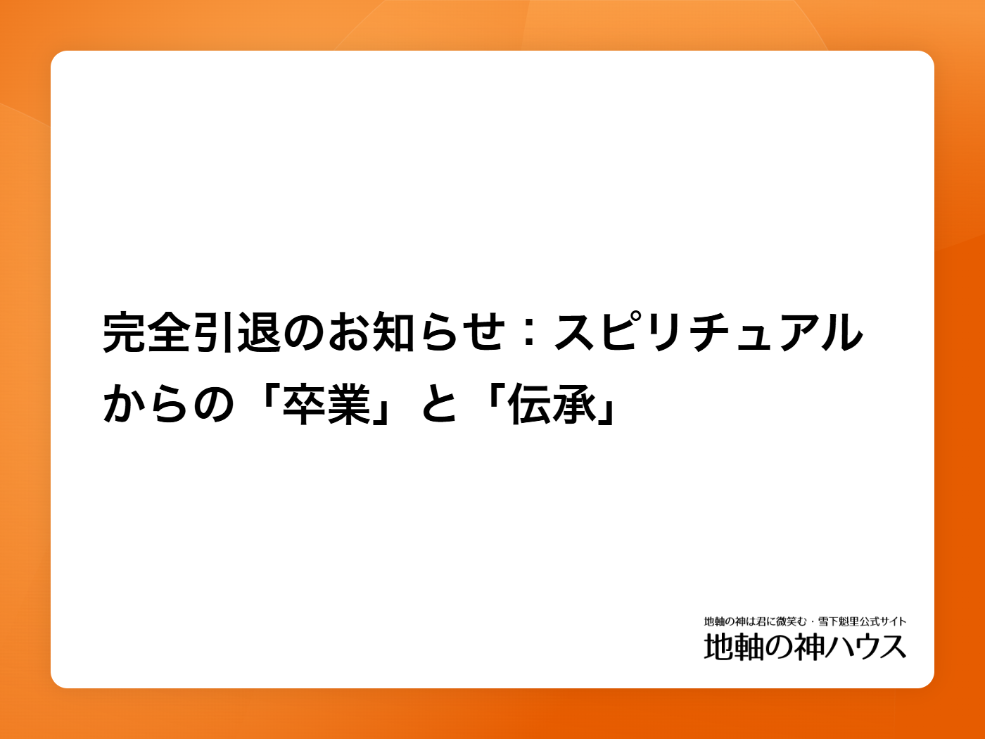 完全引退のお知らせ:スピリチュアルからの「卒業」と「伝承」