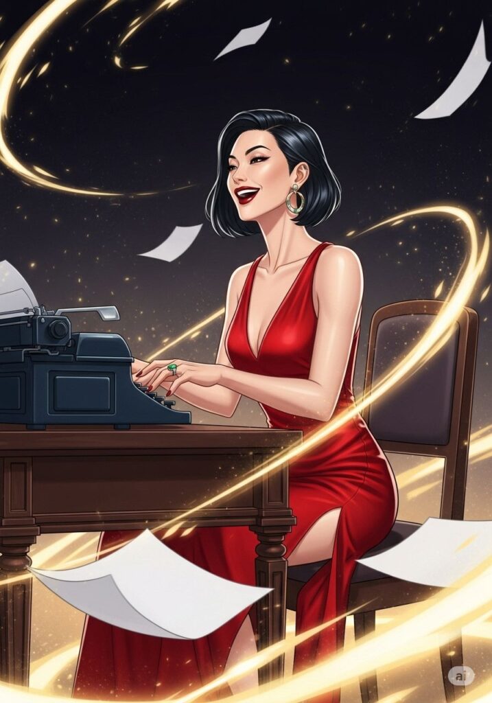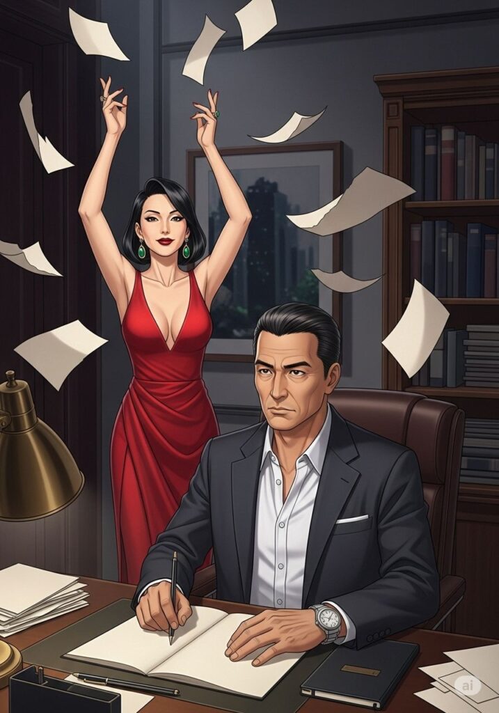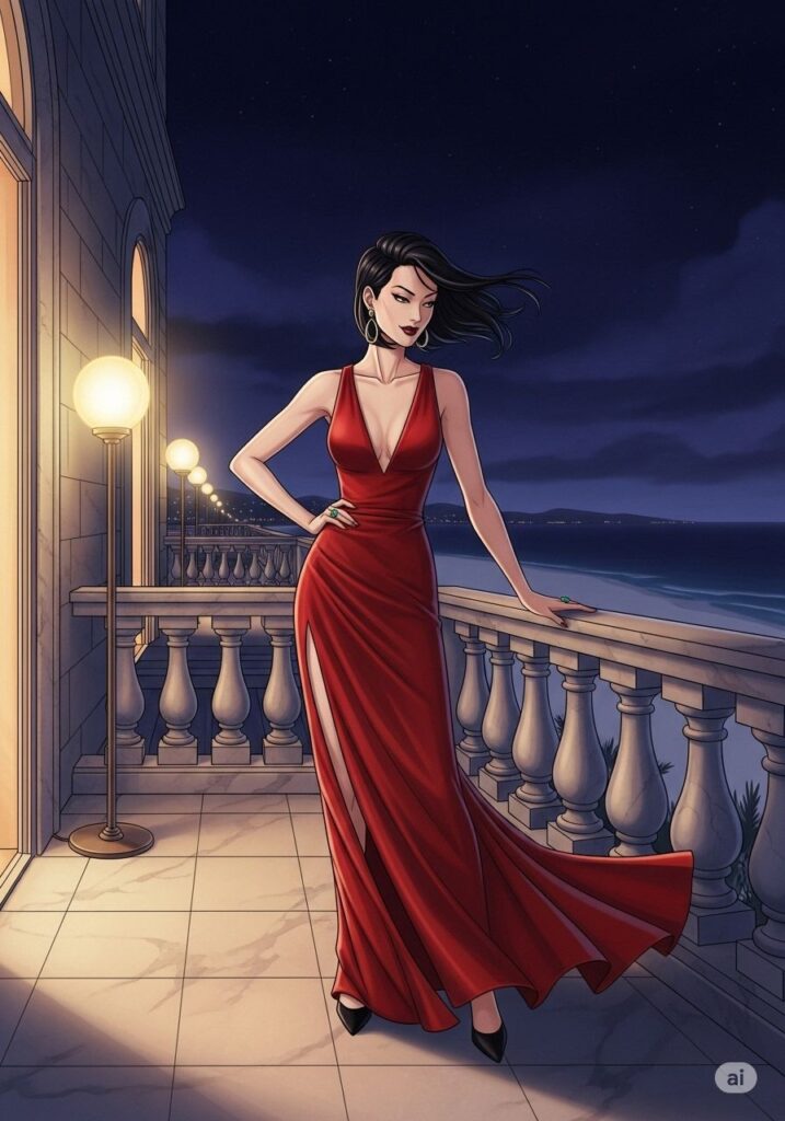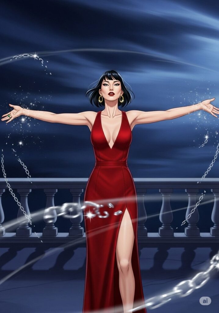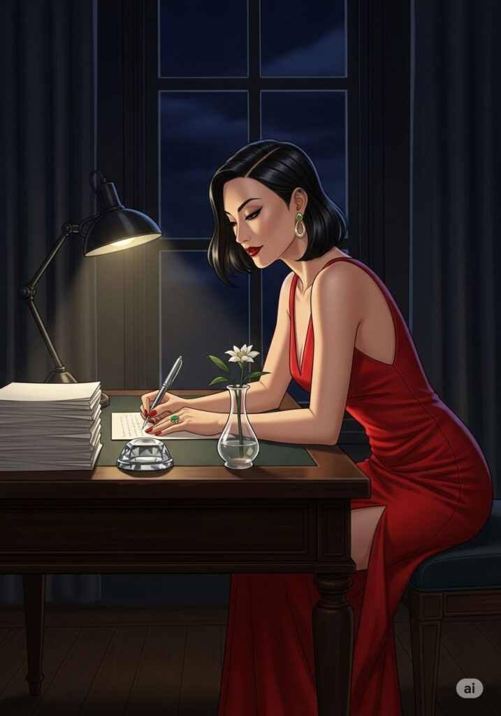 まなみは、新しい自分を「演じる」ことにした。ただの小説家ではなく、運命を支配する猛虎のように。彼女は大胆な赤いドレスに身を包み、夜のテラスへと踏み出した。臆病な自分を脱ぎ捨て、獲物を狙うような確信に満ちた足取りで、彼女は人生という名の舞台に立ち直った。