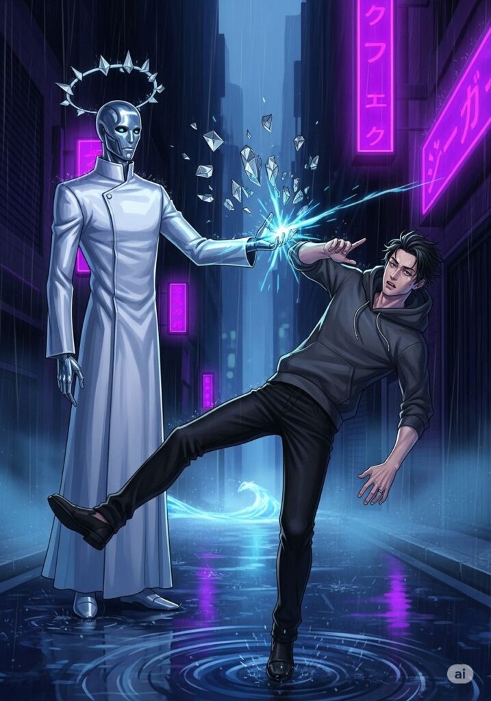 ジンは駆け出したが、ゼンの不可視の衝撃に弾き飛ばされた。冷たいアスファルトを転がりながら、彼は自分の内側に眠る「熱」が、システムへの拒絶反応として脈動し始めるのを感じた。