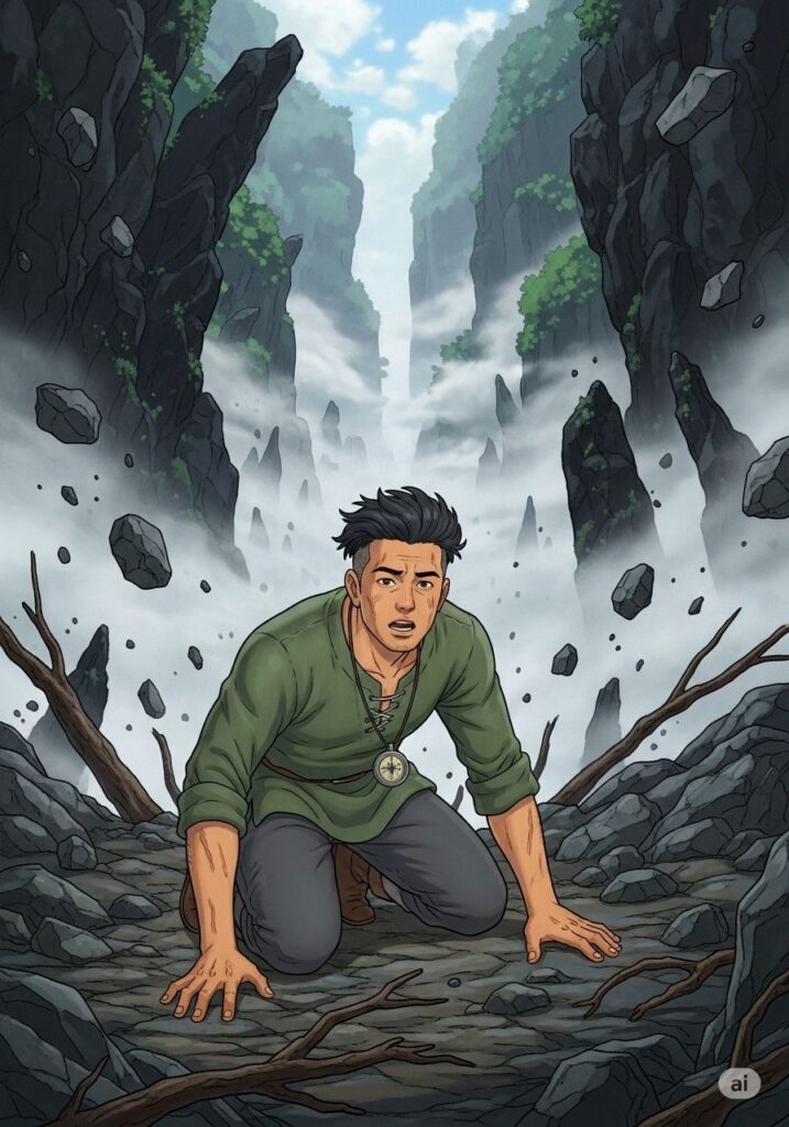 その場所は「審判の断崖(5対冲の谷)」と呼ばれていました。冒険者ヒロシは、これまで自身の鋭い「直感」だけを武器に、数々の難局を切り抜けてきました。しかし、この谷の深く、鋭い岩場に足を取られた瞬間、彼はかつてないほどの大きなダメージを負います。それは、単なる身体的な痛みではなく、今まで信じてきた「勘」という魔法が一切通用しなくなったという、残酷な真実の宣告でした。