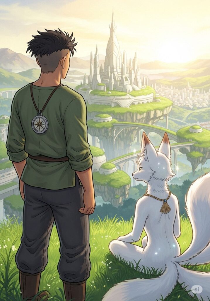 嵐が去った後、そこには見たこともないほど美しく、温もりに満ちた「新しい文明の雛形」が広がっていました。ヒロシは「シャーのコンパス」を懐にしまい、遠くの地平線を見つめました。2026年という未来は、もはや恐れる対象ではなく、彼自身がその手で築き上げた輝かしい現実となっていました。冒険は終わらず、ここから新しいページが始まります。