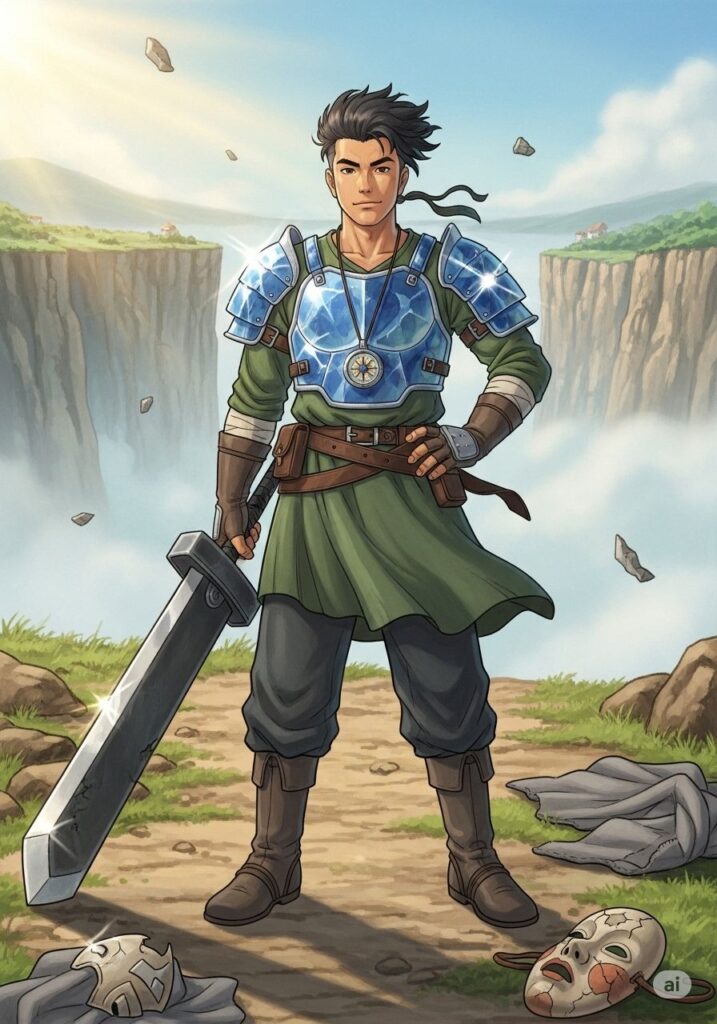 さらにヒロシは、透き通るようなクリスタルを加工した「エビデンスの鎧」を身に纏いました。それは、かつて彼を苦しめていた「見栄」という重荷を払い落とすための装備でした。客観的な事実と積み重ねた証明だけが、この鎧を強固にします。鎧を装着した瞬間、彼の体から余計な虚飾が剥がれ落ち、身のこなしが驚くほど軽やかになりました。