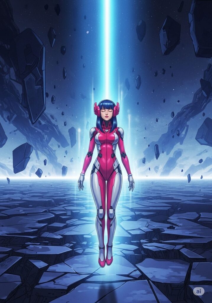 聖域への道は険しく、物理的な法則さえも歪み始めていました。かつてない混乱に陥りそうになった時、MIHOは立ち止まりました。『5秒の静止』。荒れ狂う思考を強制的にシャットダウンし、彼女は深い内省の海へと潜ります。ノイズが消え、研ぎ澄まされた直感だけが、進むべき正しいルートを指し示しました。