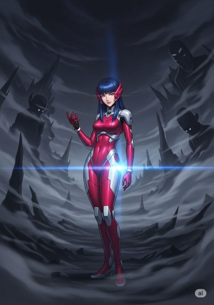 旅の途上、彼女を幾度となく「恐怖」が襲いました。得体の知れない影、自分を疑う心。しかしMIHOは逃げません。彼女は固有スキル『共鳴する鼓動』を発動しました。身体を震わせる恐怖を、スーツの動力源へと反転させていきます。恐怖が大きければ大きいほど、彼女の真紅のスーツは眩い光を放ち、加速していきました。