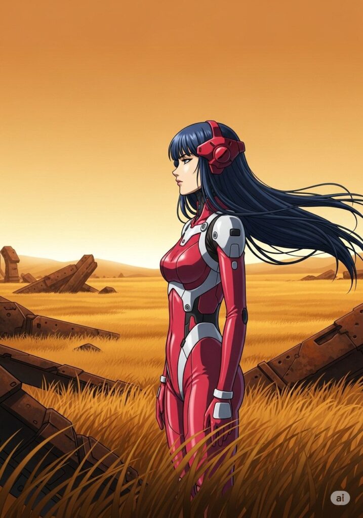 かつて「豊穣の平原」と呼ばれたその場所で、MIHOは一人、遠くの地平線を見つめていました。彼女の腰まで届く長い髪は、夜空の星々を読み解くためのアンテナのように風に揺れています。その横顔には、運命に抗う者だけが持つ「覇王の骨相」が刻まれていました。静寂の中で、彼女は来るべき試練の気配を感じ取っていました。