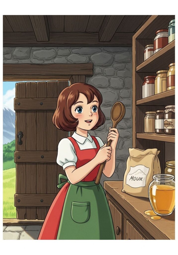 しかし、棚には黄金よりも輝く、新鮮な小麦粉、透き通った蜂蜜、そして濃厚なバターが並んでいました。