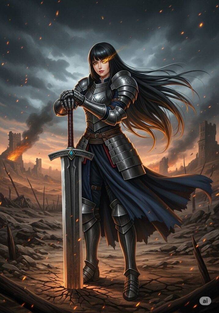 2026年以前、世界は絶え間ない闘争の影に覆われていた。知子は戦士として、鋼の剣を振るい、境界線を守るために孤独な戦いを続けていた。彼女の瞳には、戦火の熱さと、終わりのない争いへの虚しさが宿っていた。