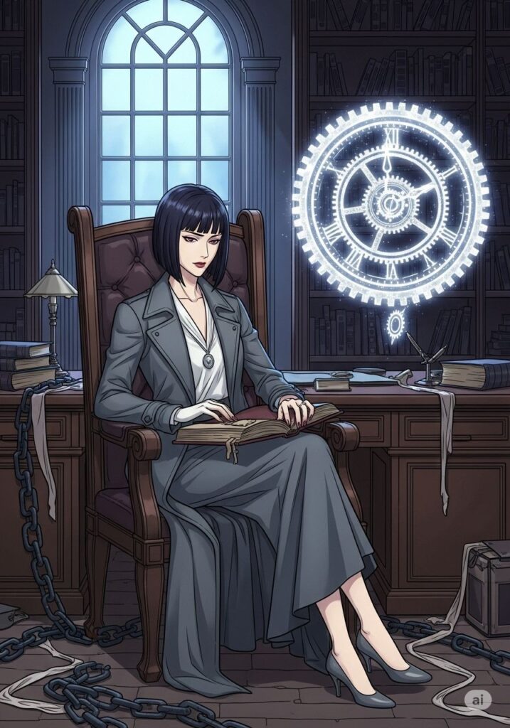 冷ややかな月光が差し込む書斎で、一人の女性が重厚な日誌を閉じた。かつて彼女の肩を縛っていた無数の糸は、今や静かに解け落ちている。戦場は静まり返り、平穏という名の空白が彼女を包み込んだ。