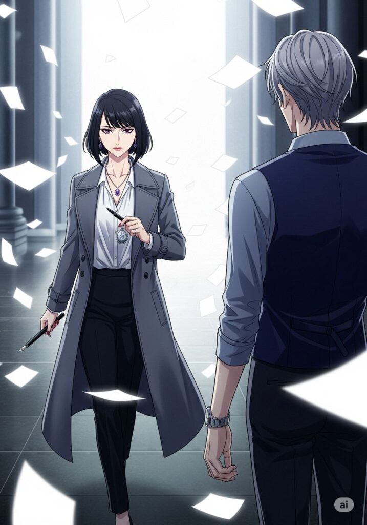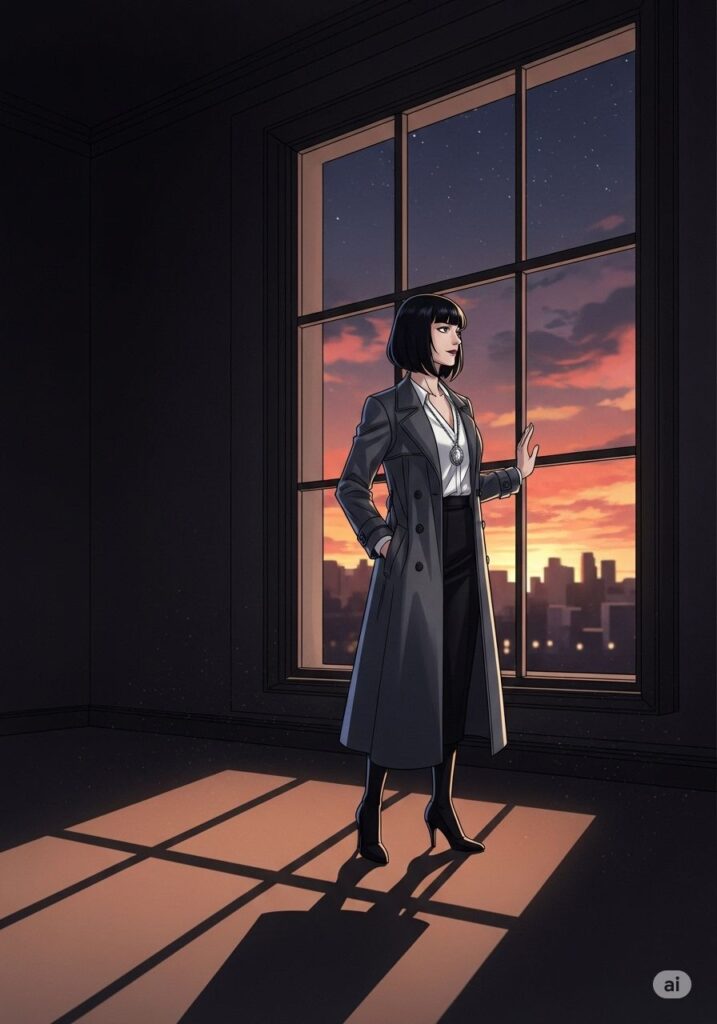 レンは一礼し、闇の中へと消えていった。残された彼女は、深く息を吸い込み、自分の足で一歩を踏み出す。物語はここから、彼女自身の筆によって綴られていくのだ。
