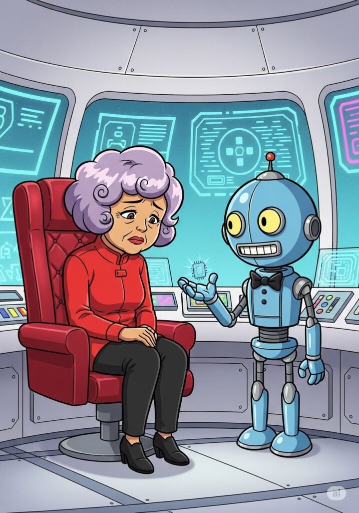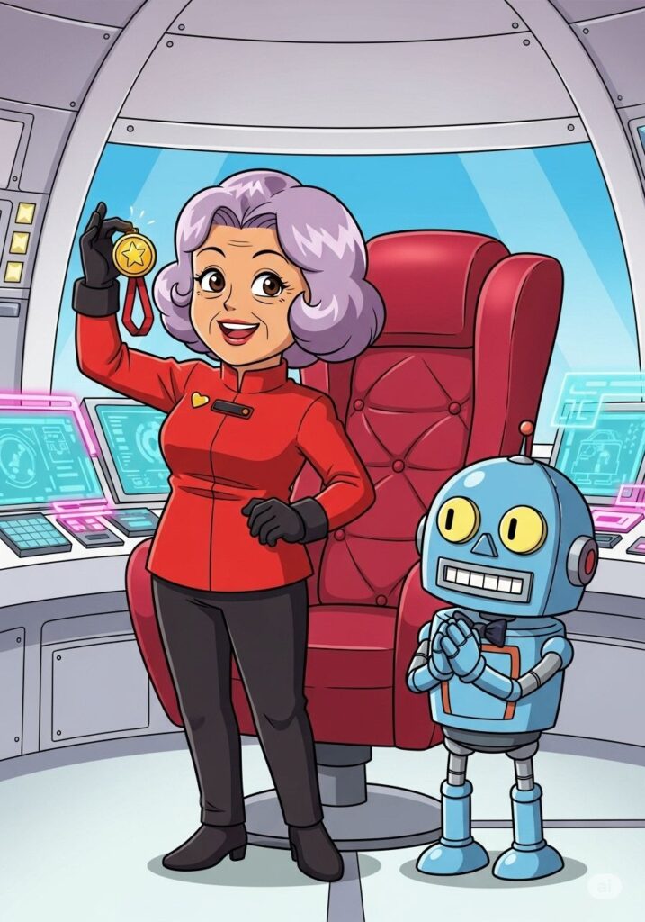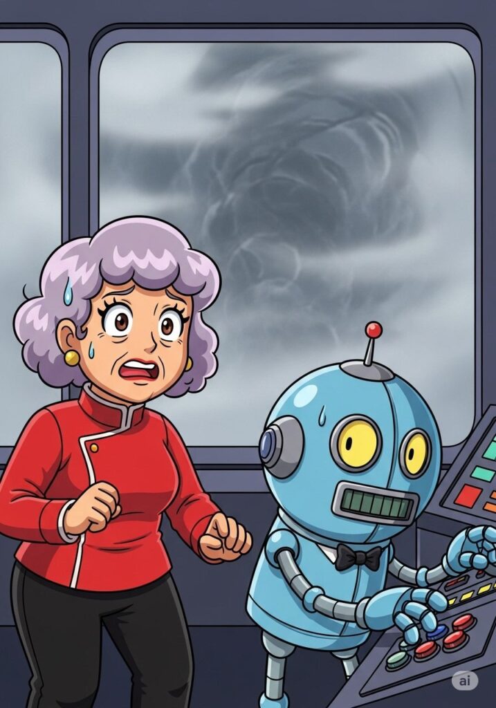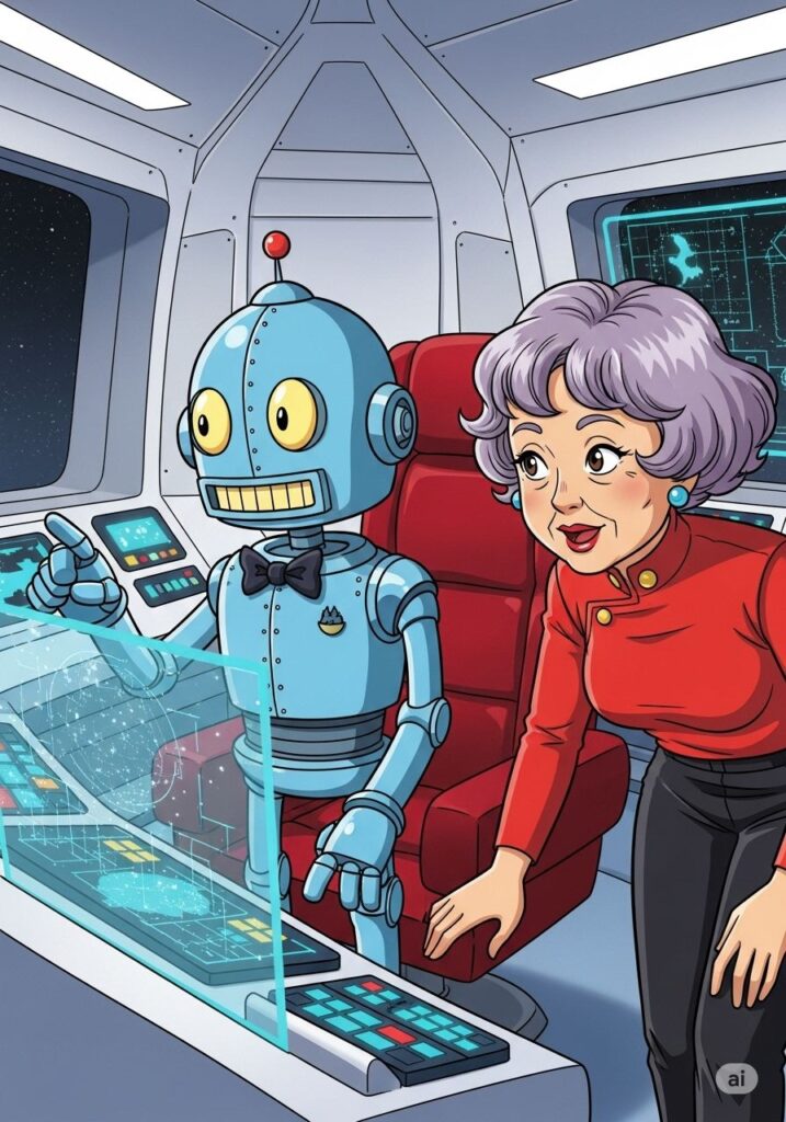 「キャプテン、そんなに張り切ると知恵のシールドがオーバーヒートしますよ」と、ナビゲーターロボのオセロくんが冷静に突っ込みました。彼はブリキのおもちゃのような愛嬌のある姿ですが、計算能力は銀河一です。