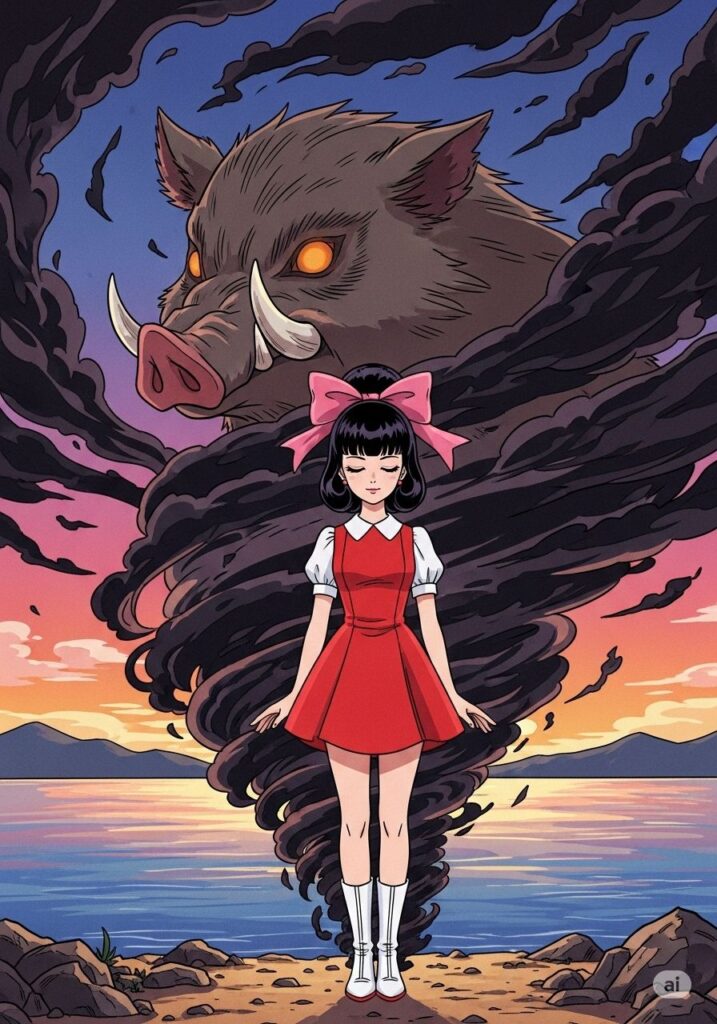 その時、三枝子の内側で何かが弾けました。かつて「欠点」だと教えられていた「5:亥」の衝動が、黒い影となって彼女の周りを渦巻きます。しかし、今の三枝子はもう怯えませんでした。その影をじっと見つめ、自分の欠点さえも自分の一部として受け入れようと決意したのです。