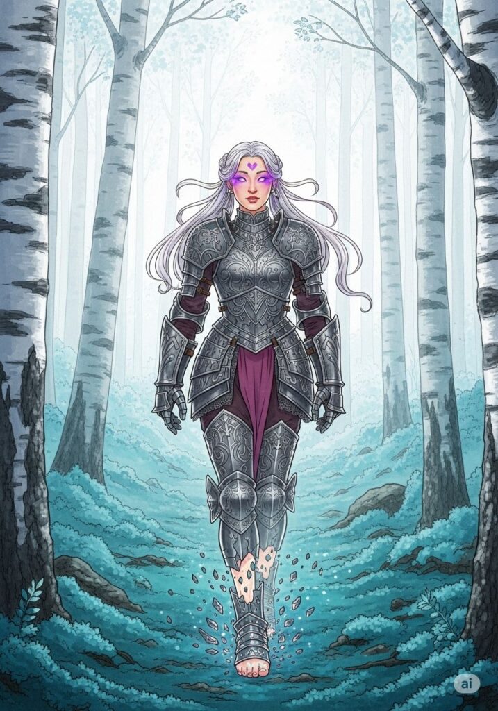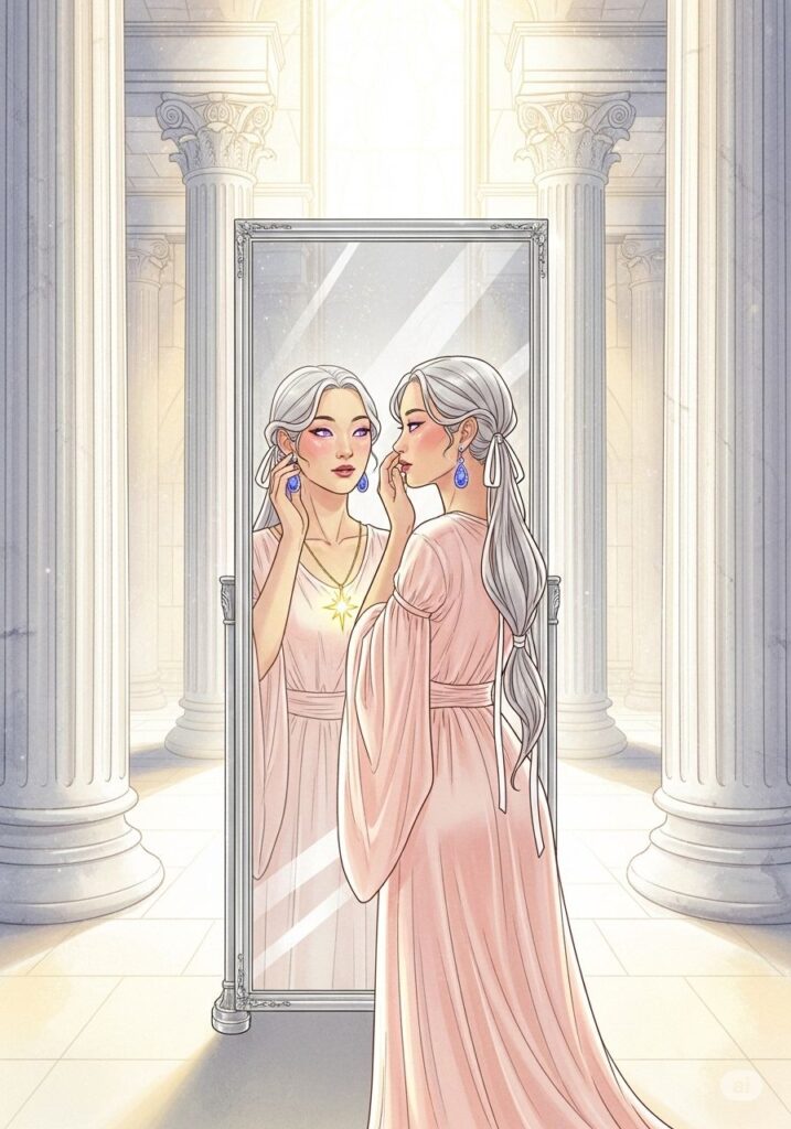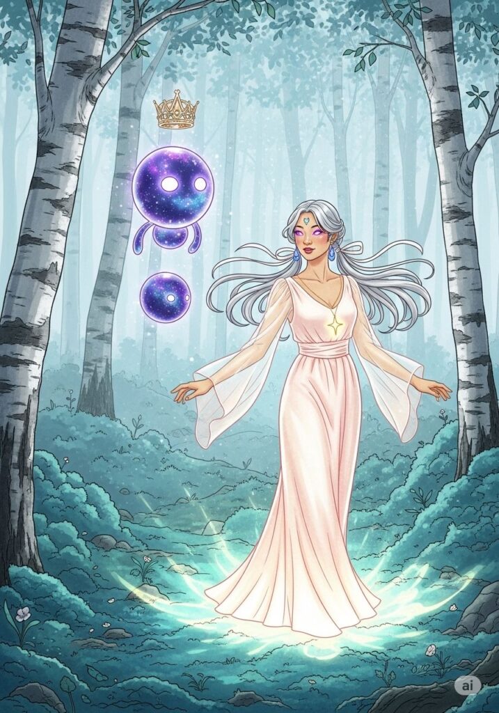 戦士の鎧は消え、代わりに現れたのは、光を透過する「直感のシルクドレス」と「慈愛の耳飾り」でした。さゆりの見た目は、内側から溢れる生命力によって40歳ほどのみずみずしさを取り戻しました。かつての緻密な計算能力は、今は人々の心を癒やす温かな「光の直感」へと変換されたのです。